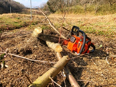 2月16日の1コマ その3:桃の木の更新のために更新する桃の木を永禮さんが伐採してくださいました。この日が最後の2本です!