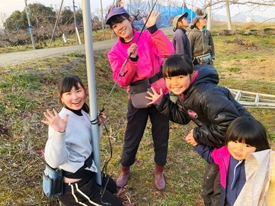 2月12日の1コマ その2:桃の誘引やネットをかけるための準備を進めました!