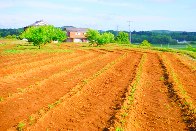 もとは水田だったので粘土質で、中央やや北側に2平米ほど地盤が緩くてトラクターがのめり込む場所があり、そこを避けて作物を作っています。
