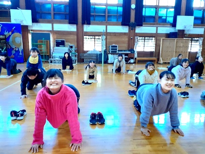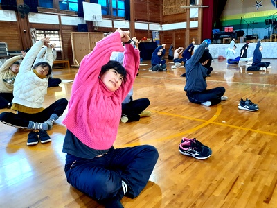 最後に、卒業生ののんちゃんが教えてくれたというストレッチで終わりました。肩胛骨の周り、足の股関節や筋肉を、じっくりほぐしていきました。