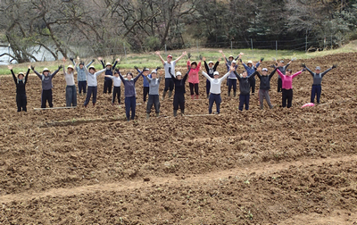 畝の上に上げた土を鍬で砕いていく作業も面白かったです。二十人以上の人数だったので、お互いに追い越しながら進むと、五〜六回追い越したらもう終了しました。