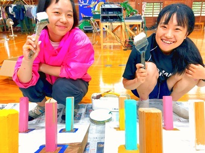 と、少し混乱が起きるのですが、みんながすっかりプラン通りに塗ってくれて。塗っていくと徐々に、ものすごくきれいになっていきました。茶色い台が徐々に色づいていく。その光景を見ているだけでうれしくなる。