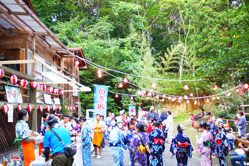 だんだんと日が暮れてゆくと、山の脇道に設置されたロウソクや、山小屋から引っ張ってくれた桃ライトが点灯しました。お祭りの雰囲気もそうですが、ひとの賑わい、活気をより生き生きと、笑顔(表情)をあたたかく映してくれて“なのはなの縁日”を最高に盛り上げてくれます。