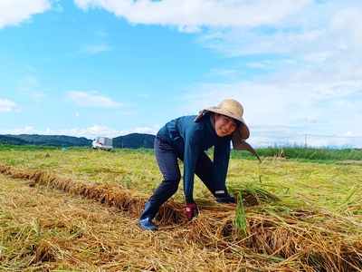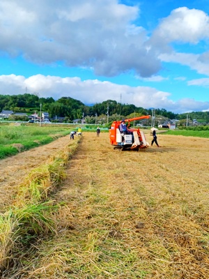 永禮さんたちが諏訪神社田んぼの稲刈りを進めてくださり、残す田んぼは約10枚となりました。