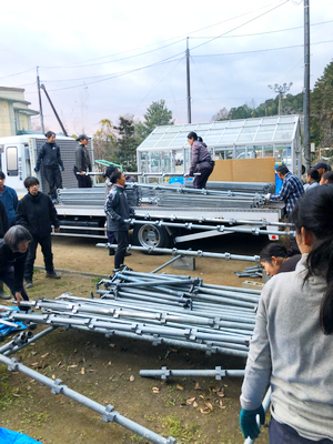 〈舞台背景の土台、そしてバンドの足場となるパイプ資材を、永禮さんが運転して下さる回送車へ積み込みました。この週末で、しっかりと段取りを立て、ホールでの用意に臨みます〉