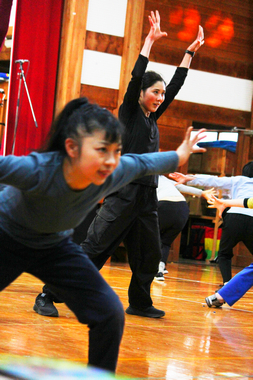 低い姿勢をしていると、腿の筋肉や腹筋、背筋が徐々に痛くなってきます。自分の筋力の無さが、とてもくやしくなりました。でも、とにかく、皆についていくこと、少しでも、誰かに届くように、誰かの気持ちを動かす力になるように、と思いながらやっていきました。皆が必死なのも伝わってきて、繰り返せば繰り返すほど、一体感が生まれます。